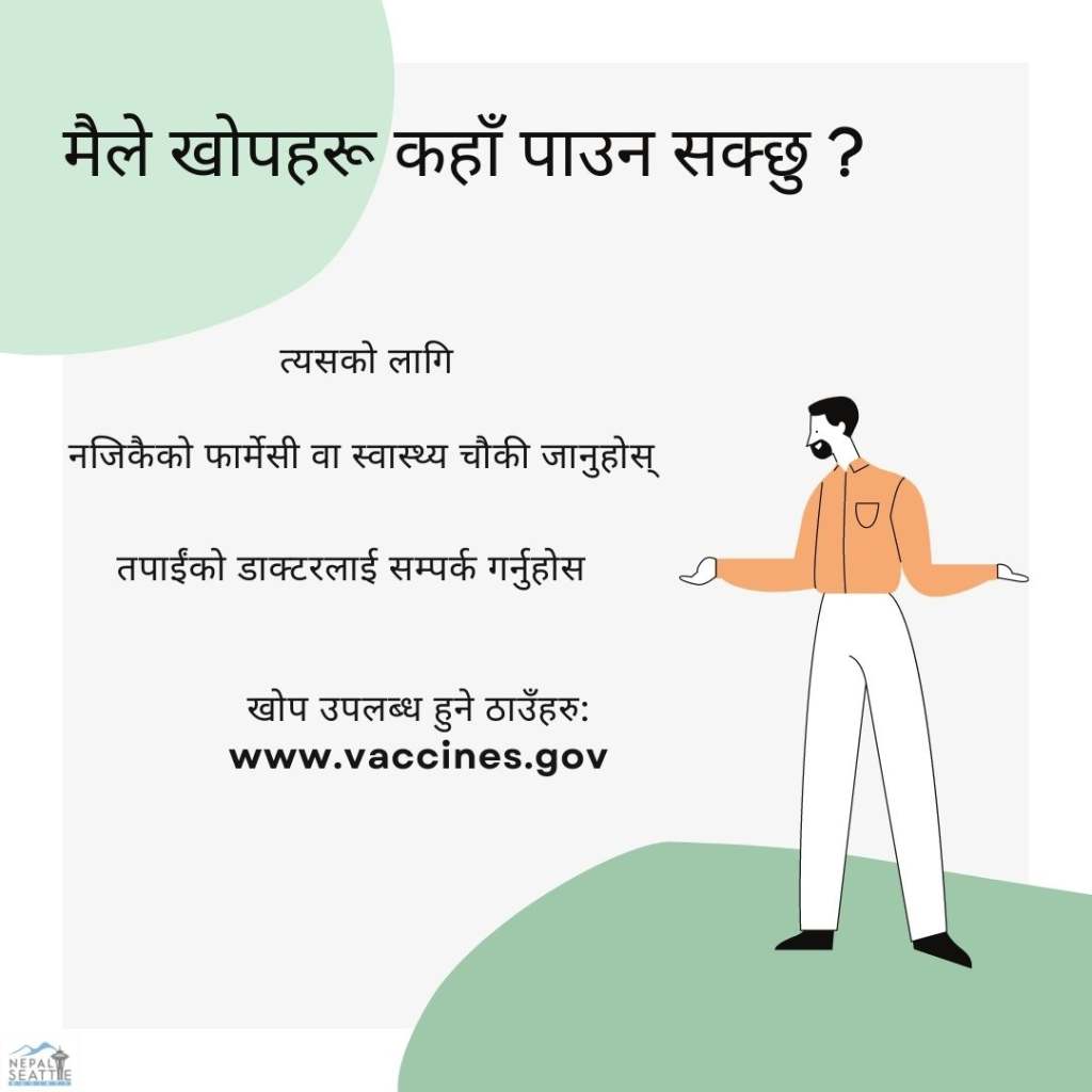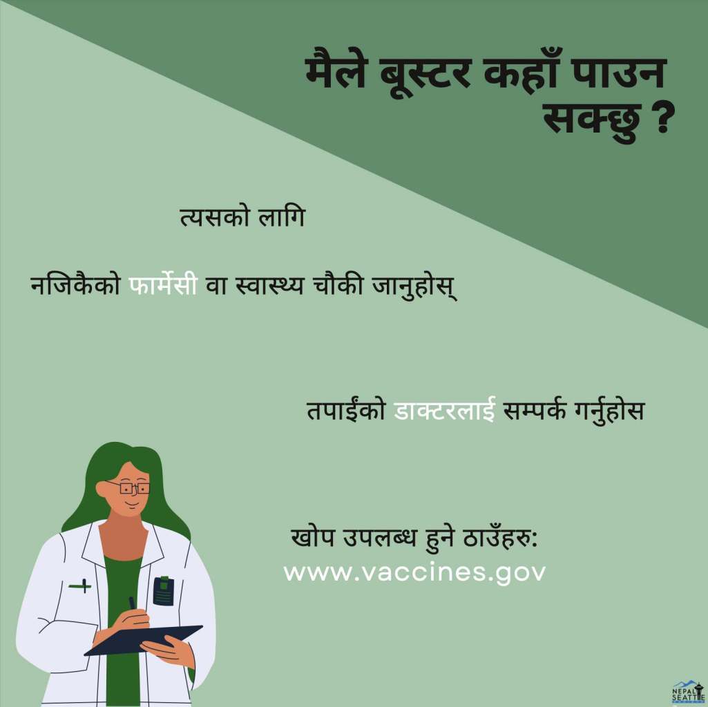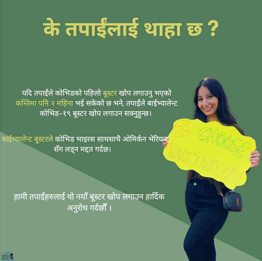 This social media post was created to aware Nepali Washington residents about the availability of different types of vaccinations.