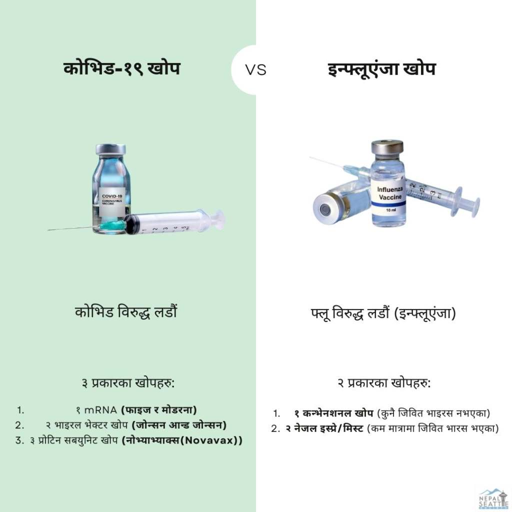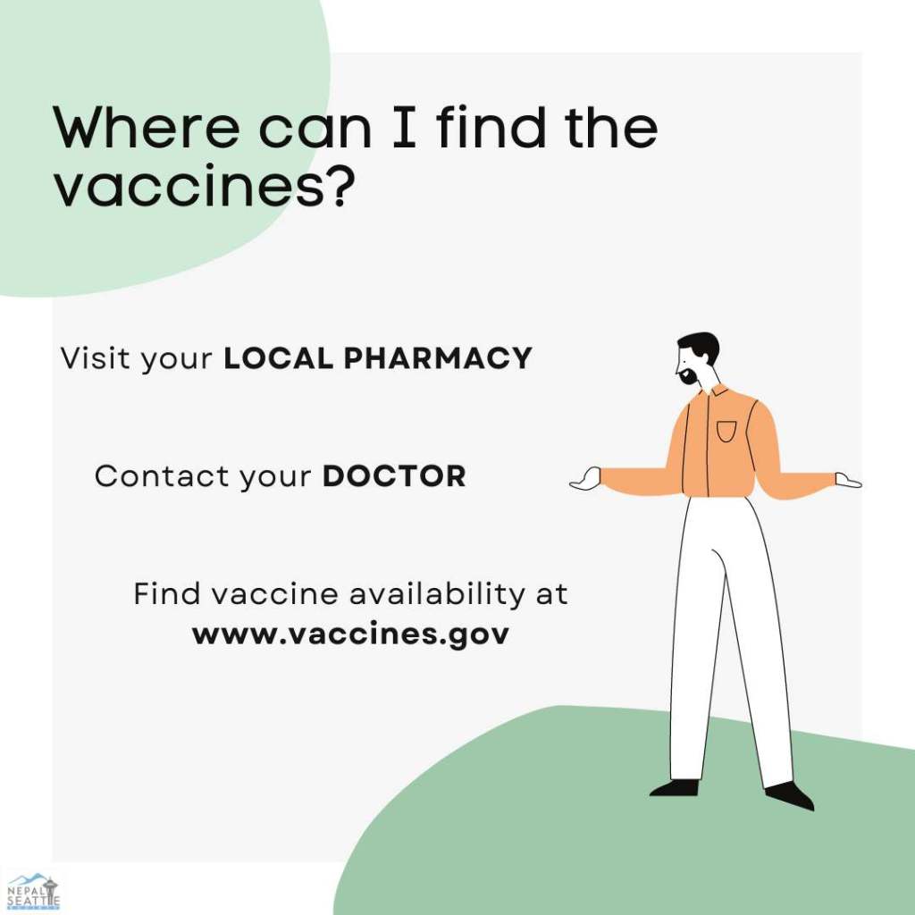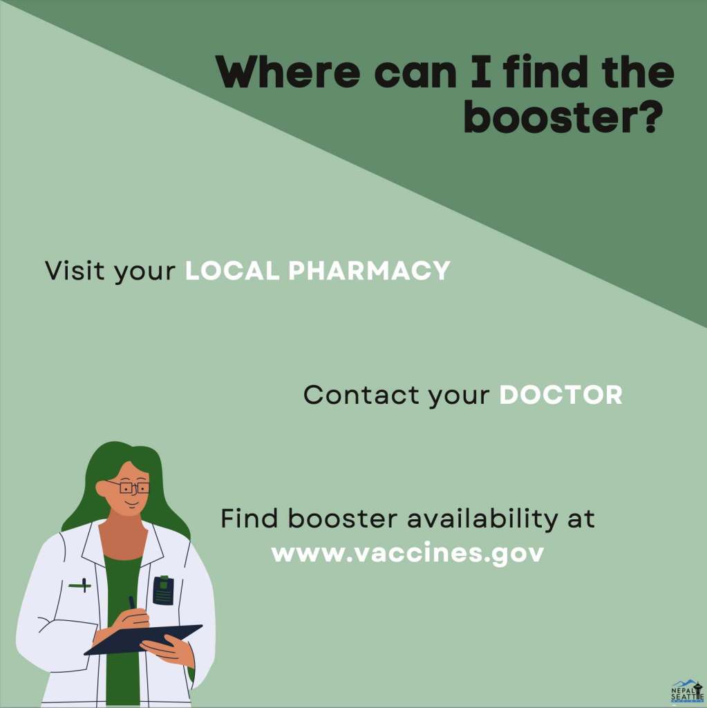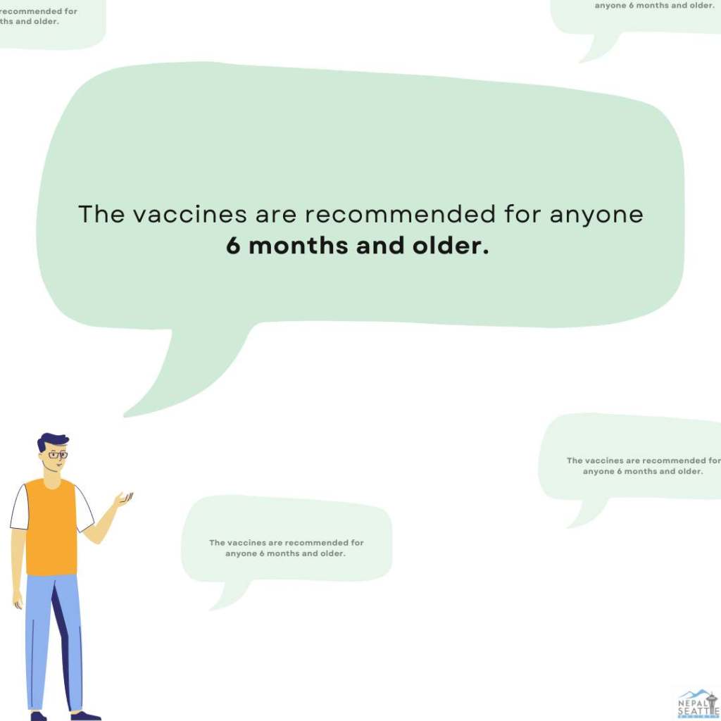 This social media post was created to aware Nepali Washington residents about the availability of different types of vaccinations.