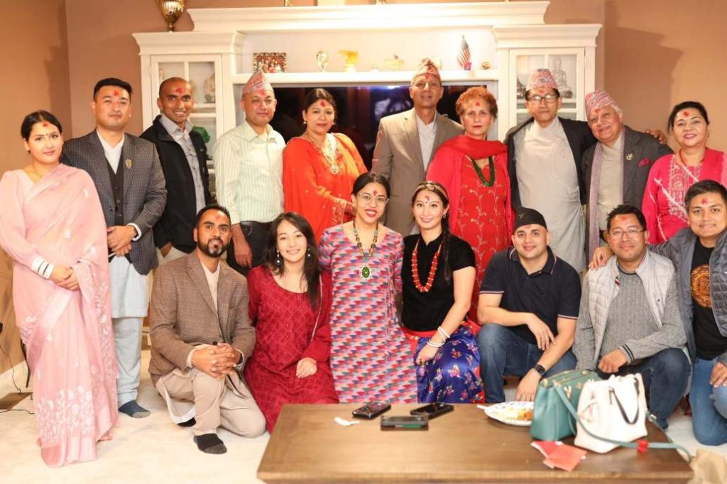To kick off the festivities, a Google form was circulated on the NSS website, inviting community members to extend invitations for this jubilant occasion. Dedicated NSS volunteers devoted three days to perfecting their performances. The inaugural day, hosted at Buddhi Jung Kunwar’s residence by Buddhi Jung Kunwar, Mitra Dhital, Ujjwal Khadka, Durga Shrestha, Mukunda Bam Malla and Kiran Shrestha, was enriched by the participation of students from the Nepali South School, adding an extra layer of significance by passing down cultural traditions to the younger generation.