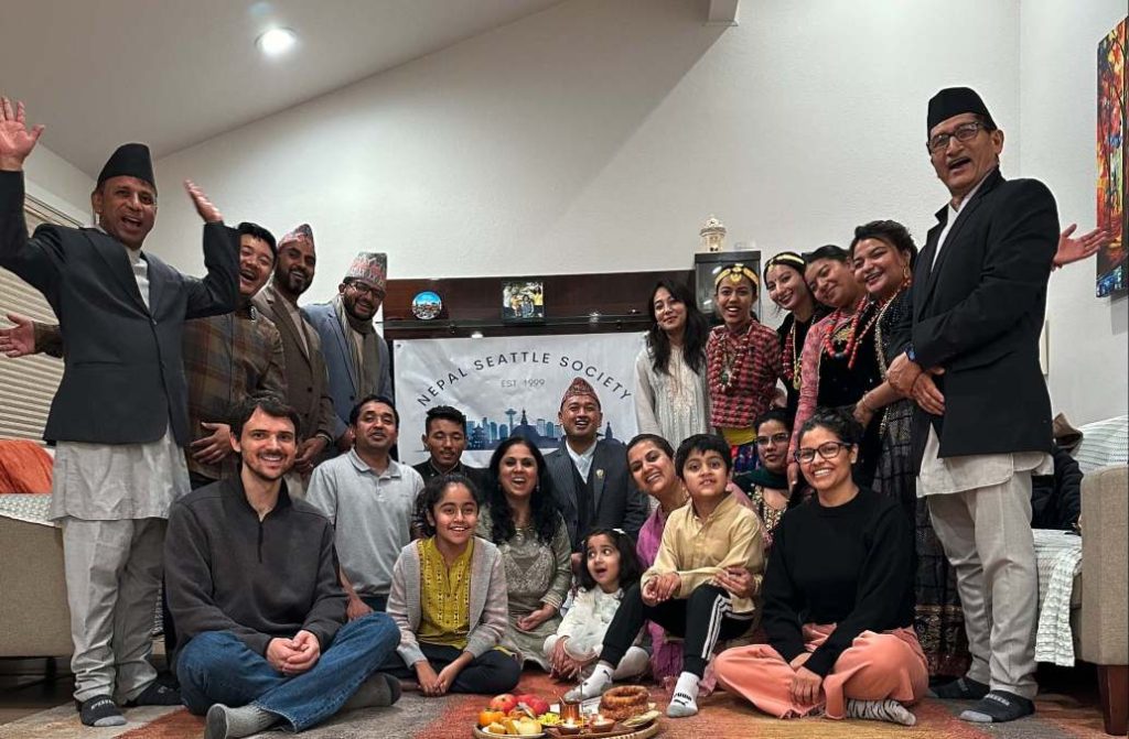 The celebration continued the second day with visits to houses in Kirkland and Mukilteo, hosted by Salana Adhikari and Sujan Kumar Shrestha, respectively. The final day unfolded in Seattle, graciously hosted by Prasanna Gautam and Viviane. Throughout these three days, the singing and dancing aimed to replicate the lively atmosphere of celebrations in Nepal.
