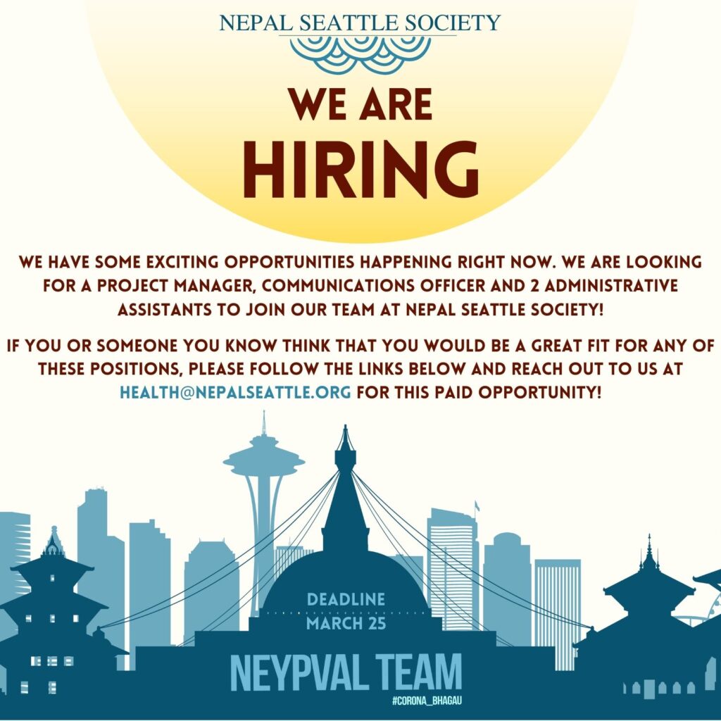 Please contact any Nepal Seattle Society volunteers or email us if you need help on COVID-19 vaccines and related issues. We will do our best to provide the most up to date info.