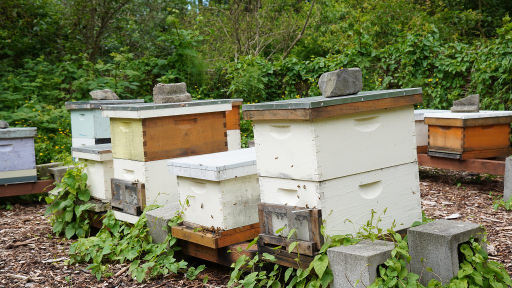 Laura took us on a trail explaining its history and how they still preserve the unceded lands of the Duwamish tribe. We also stopped at the Apiary, a place where honey bees are kept. Before heading to the greenhouse, we stopped at the community U-pick. The community U-pick is a spot for people to pick whatever is growing there.