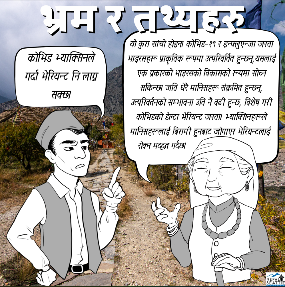 This campaign was launched to combat a lot of misinformation and disinformation that were circulating on social media. We translated CDC guidance to make it more educational but also engaging using comic characters created by Sierra Cvech and executed by Communication Officer Rachit Raj Shrestha. We also translated it to Nepali to make it accessible to our Nepali Speaking community. Some translations were done by our Financial and Admin Assistant Shubheccha Shakya along with our team and volunteers in the Nepali Translation team within the NSS committee. Some research was done was our Public Health Officer, Shraddha Malla.